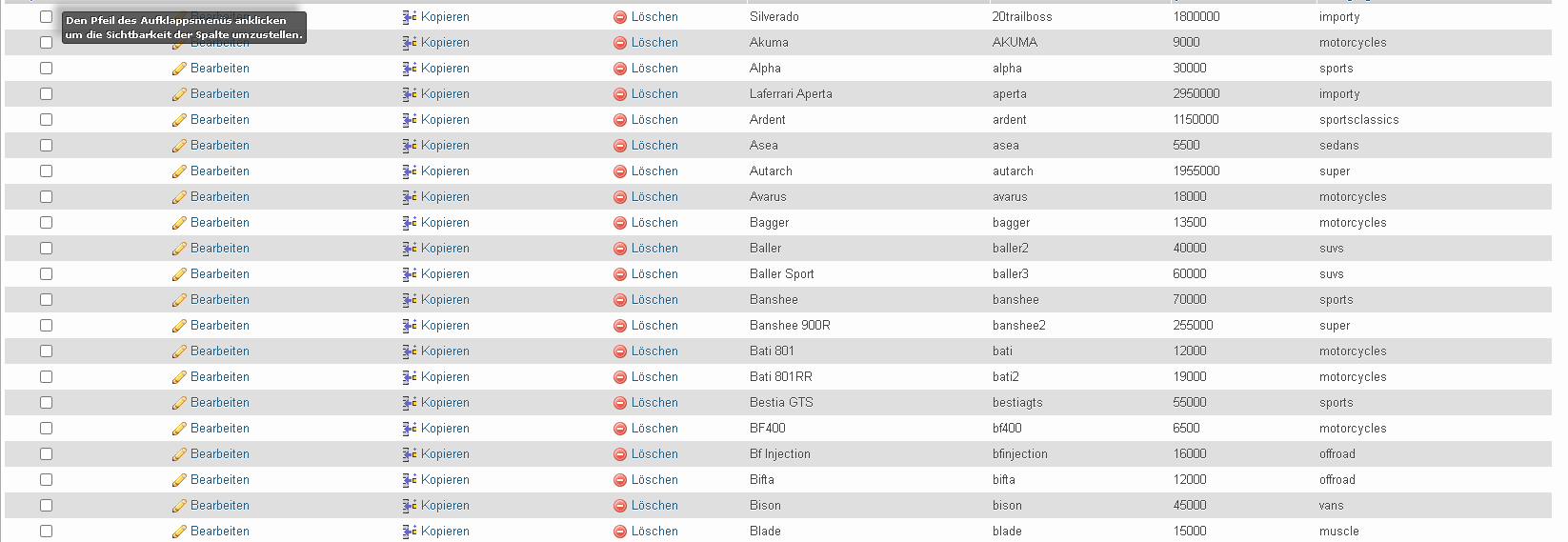 Schritt 4: Verwende eine ID die bereits kein anderes Fahrzeug hat. Die ID ist wichtig, dies ist der Spawn-Name des Fahrzeuges.