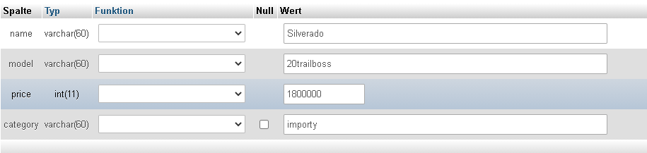 Denn Fahrzeugnamen den du eingibst hängt von dir ab, das gleiche ist der Preis. Die Kategorie suchst du auch aus, ob es ein Suv oder Sport Fahrzeug ist musst du selbst entscheiden.