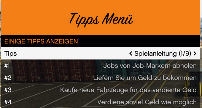 Beim joinen wirst du in einen Van gesetzt. Dein Ziel ist, einen Job in der Nähe zu finden und Ihn erfolgreich abzuschließen. Auf der Map siehst du verschiedene Blips *Koffer* sind die Jobs, dort nimmst du ihn mit der Taste "E" an. Wenn du paar Jobs erledigt hast ,wirst du dir bessere Fahrzeuge leisten können. Durch den Kauf neuer Fahrzeuge kannst du mehr mit den Jobs verdienen. Die Gameplay-Tipps findest Sie jederzeit im Menü unter "F7"