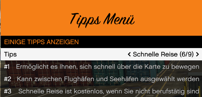 Du kannst dich schnell auf der Karte bewegen. Es ist kostenlos, wenn du gerade keinen Job hast. Die Ziele werden auf deinem Radar angezeigt, während du dich im Schnellreisemenü befindest.