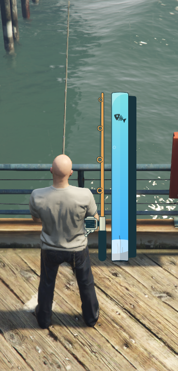 - Das Ziel ist mit dem weißen Balken auf dem Fisch zu bleiben, bis rechts der orange Balken sich voll wird. Dann hast du einen Fisch gefangen