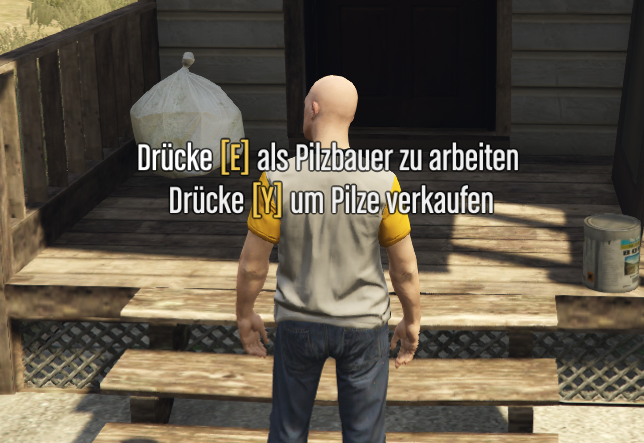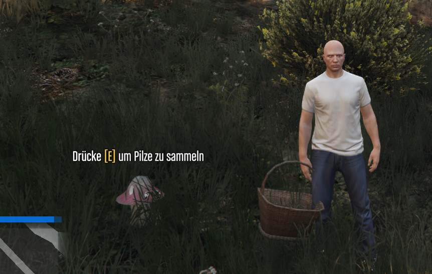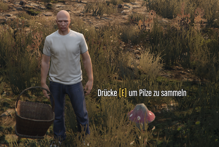 Du nimmst dein Job an, läufst zum Marker auf der Map und kann dort mit der taste "E" anfangen Pilze zu sammeln.