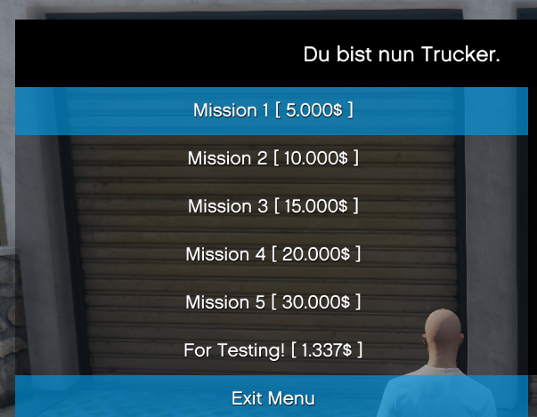 Mit diesem Trucker-Script stehen dir 5 Missionen zur Verfügung, von kurzen bis zu langen Entfernungen.