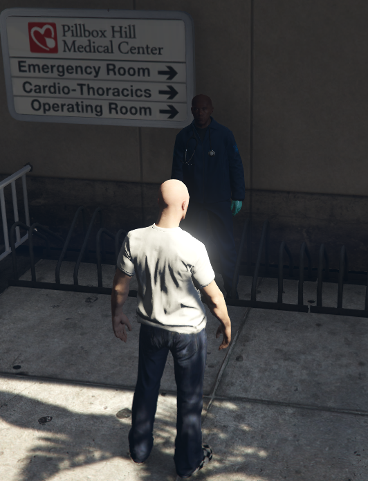 Mit der Taste "E" am Krankenhaus öffnet Ihr das Menü beim PED.