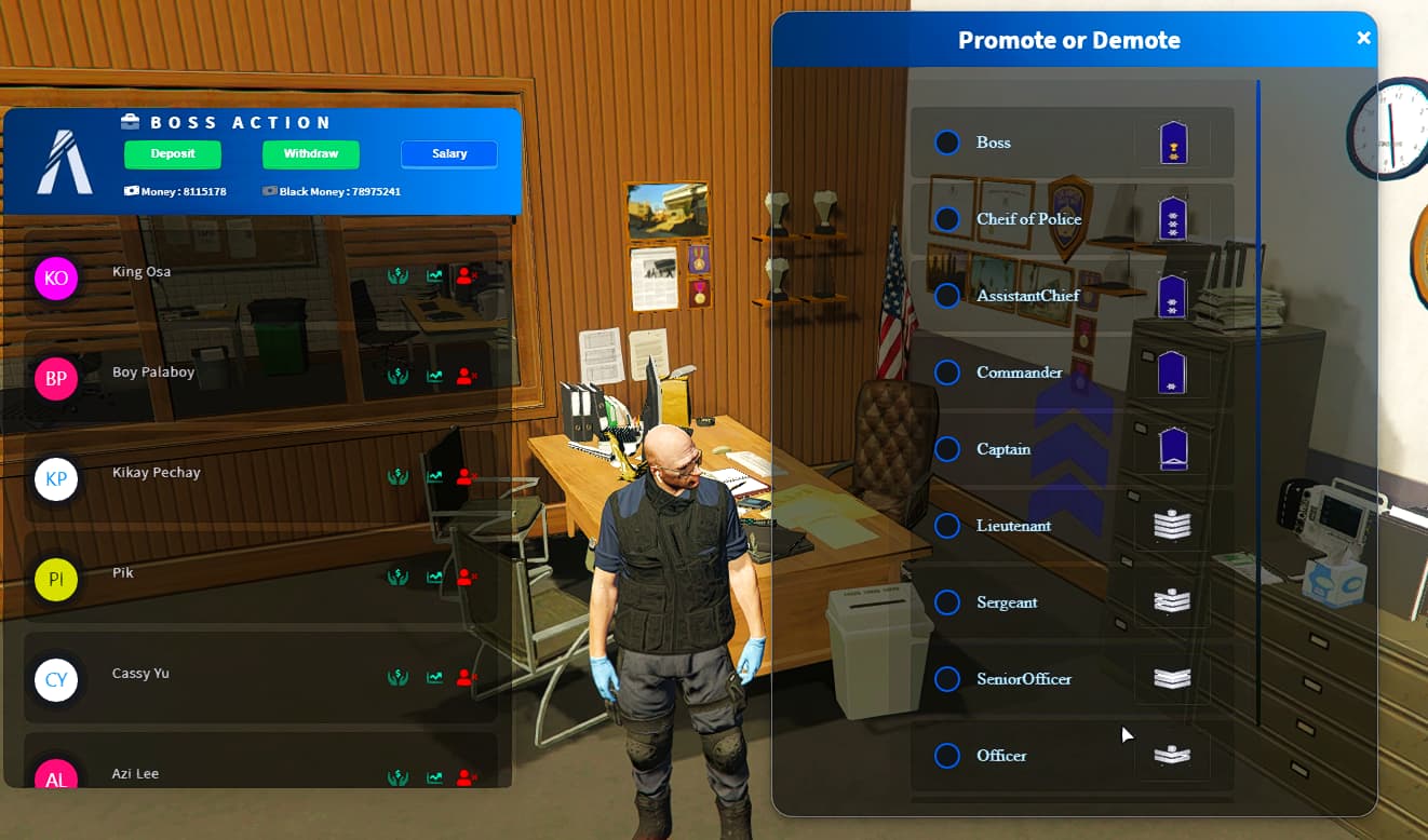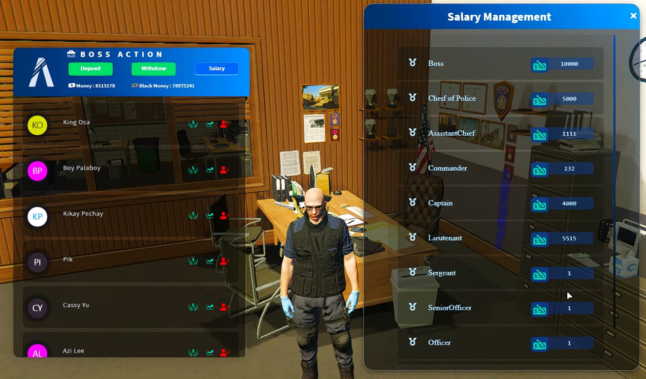 - Jobgeld (Bargeld und Schwarzgeld)Bonus an Mitarbeiter senden (Offline-Spieler können empfangen)