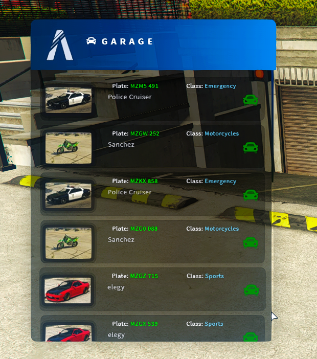 - Spielereigene Fahrzeuge, die von Fahrzeugen gekauft wurden, werden hier gespeichert