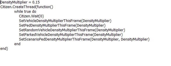 Der Code hat eigentlich nur die Funktion um die Bots/Peds auf dem FiveM Server zu reduzieren.