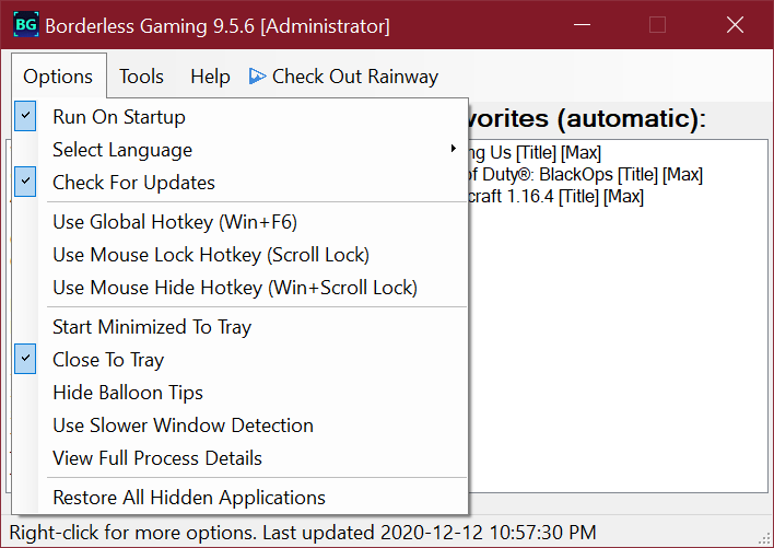Die App bietet die Moeglichkeit bei jedem Spiel bzw. jeder Anwendung das "Borderless Gaming" zu aktivieren. Entweder per RegEx-pression oder klassich einzeln.