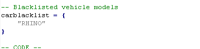 Hier fügen wir alle Fahrzeuge zu, die auf dem Server nicht benutzt werden dürfen.