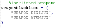 Hier werden Waffenmodels eingefügt die auf dem Server verboten sein sollen.