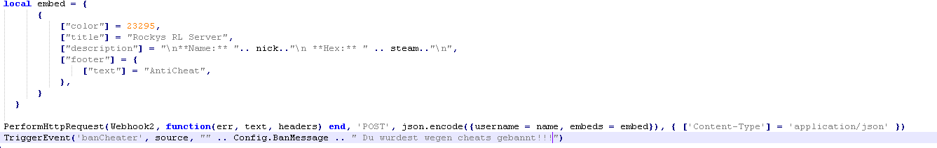 Hier tragen wir unsere Discord hooks ein, wo die Anticheat logs angezeigt werden.